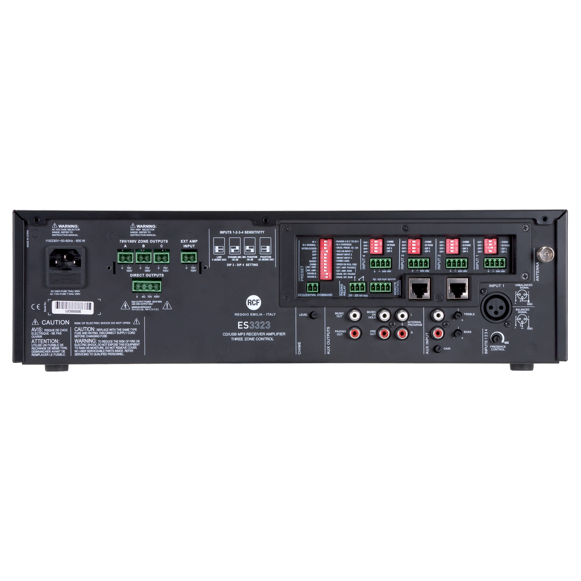 - Full digital technology amplifier 320W RMS, 100V-70V outputs